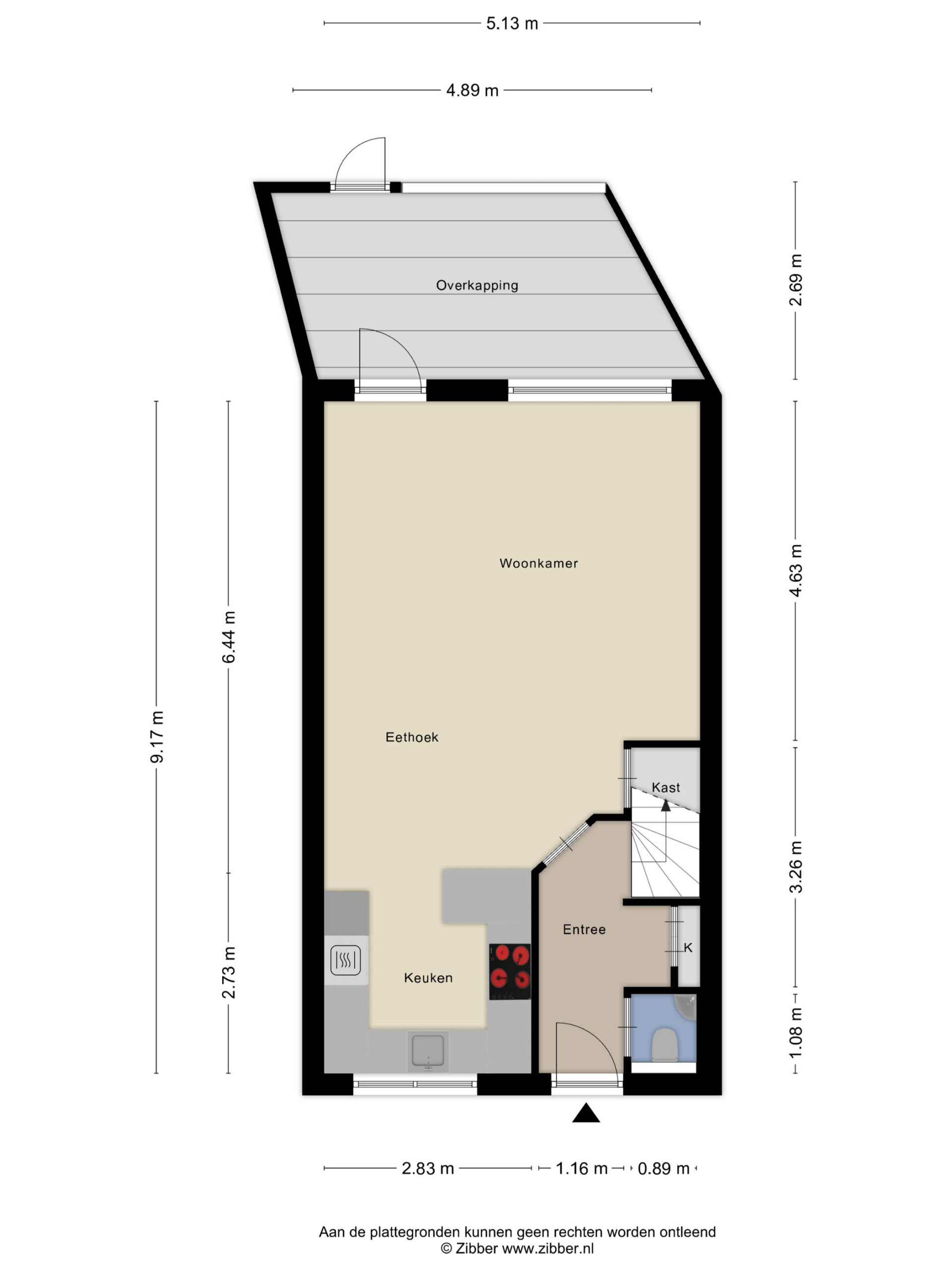 Entree, hal met modern toilet, meterkast, trapopgang, woonkamer met trapkast, royale en lichte keuken met eetbar en inbouwapparatuur