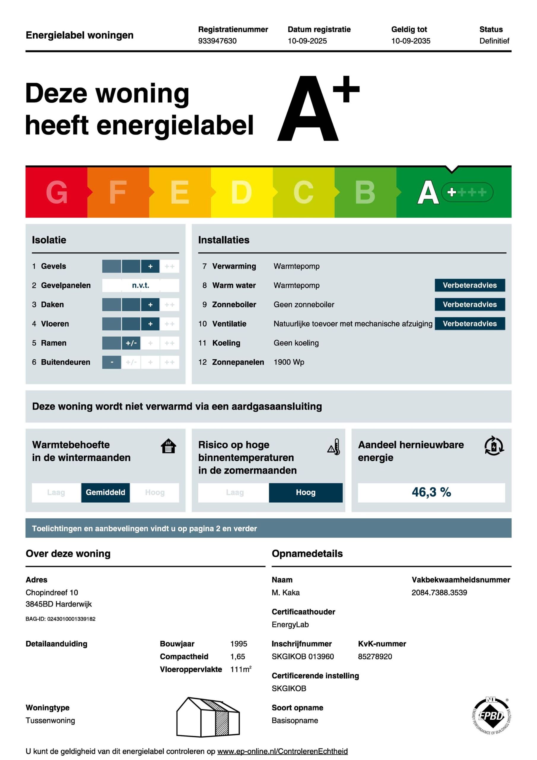 COMPLEET VAN HET GAS AF en daardoor een indrukwekkend ENERGIELABEL A+ !!