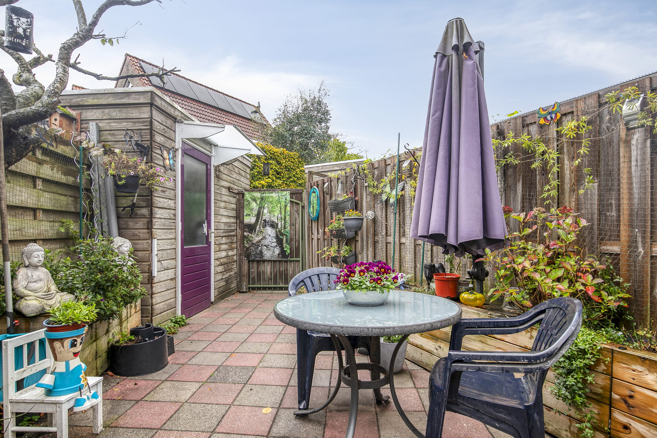 Aan de voorkant kijk je uit over een fietspad. In het voorjaar een ware haag van bloesem en bij zomerdag een frisse groene blik. Aan de achterzijde geniet je van een besloten tuin met niet al te veel onderhoud. Een ideale plek om tot rust te komen met een goed boek of voor gezellige (barbecue)avonden.