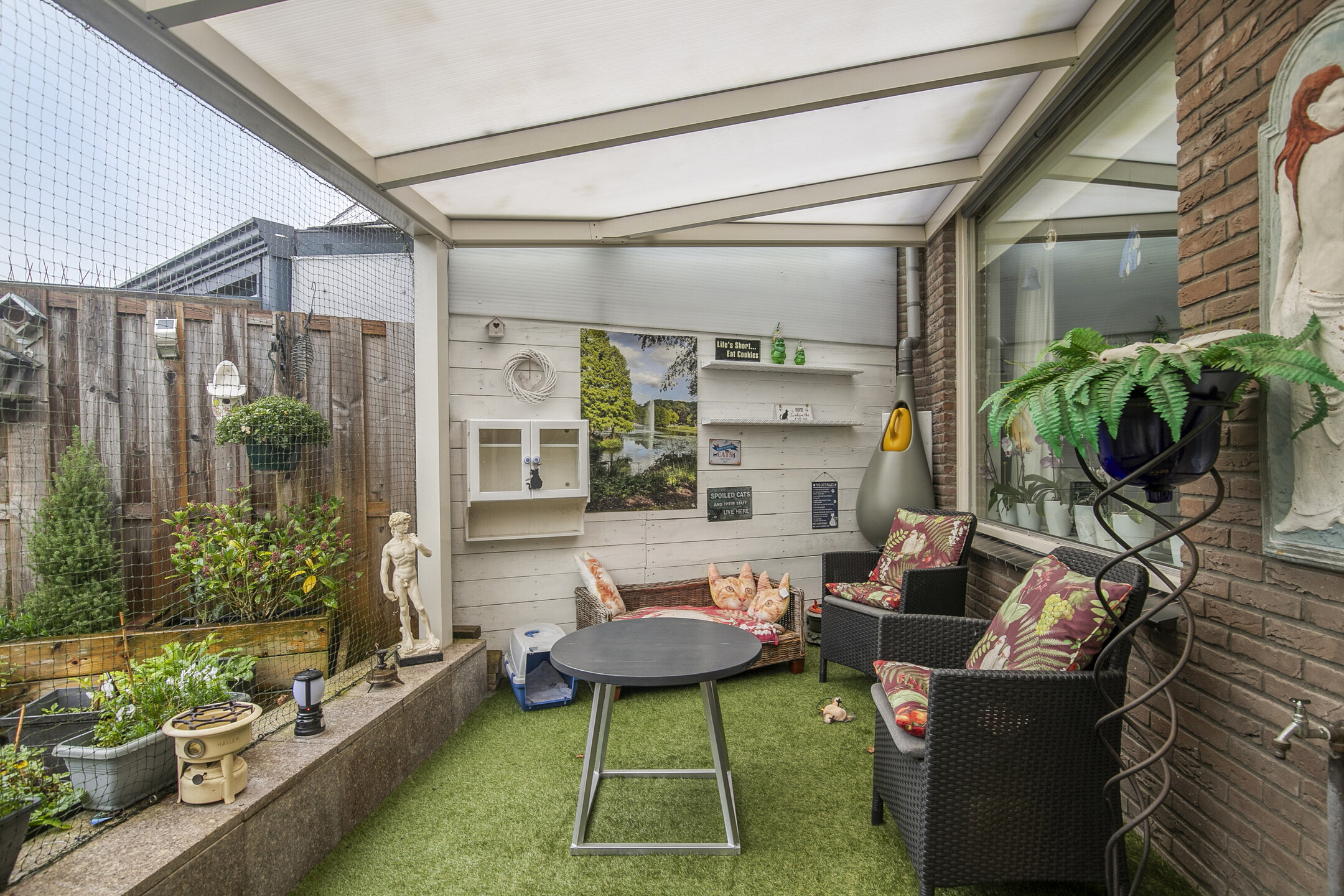 Verder is de hele begane grond in 2020 voorzien van comfortabele vloerverwarming waar vervolgens een modern PVC op is gelegd. En in 2021 is er een terrasoverkapping gebouwd aan de achtergevel. Bij zomerdagen of een regenachtige dag een ideale plek om beschut buiten te kunnen zitten en daarmee is dit een prettige verlengstuk van de woonkamer.