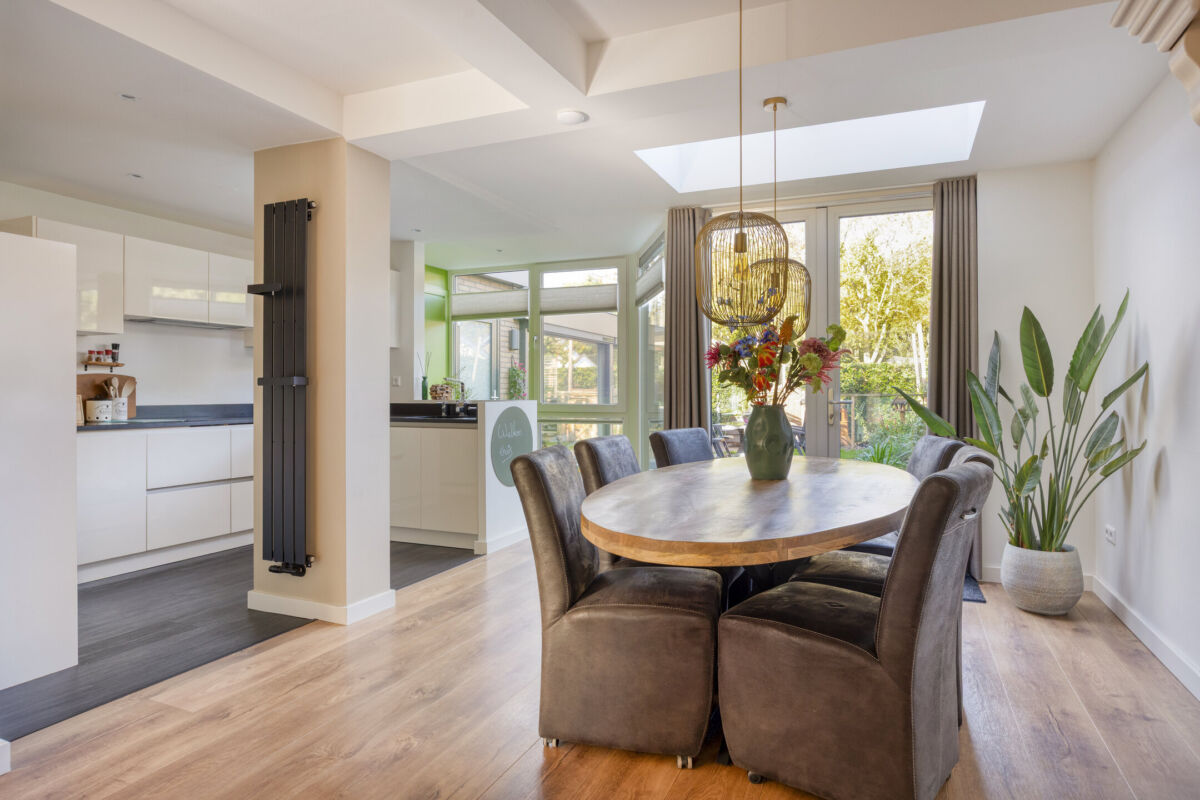 Dankzij de royale uitbouw (2024) heeft deze woning een indrukwekkend woonoppervlak van maar liefst 163 m². De woonkeuken vormt het warme middelpunt van het huis: een lichte, sfeervolle plek met direct contact met de tuin. Grote ramen in kunststof kozijnen (met triple glas), een lichtstraat en openslaande deuren zorgen ervoor dat het daglicht je hier letterlijk tegemoetkomt. Zie je jezelf al zitten met een kop koffie, terwijl de kinderen aan tafel spelen of huiswerk maken? Genieten!
