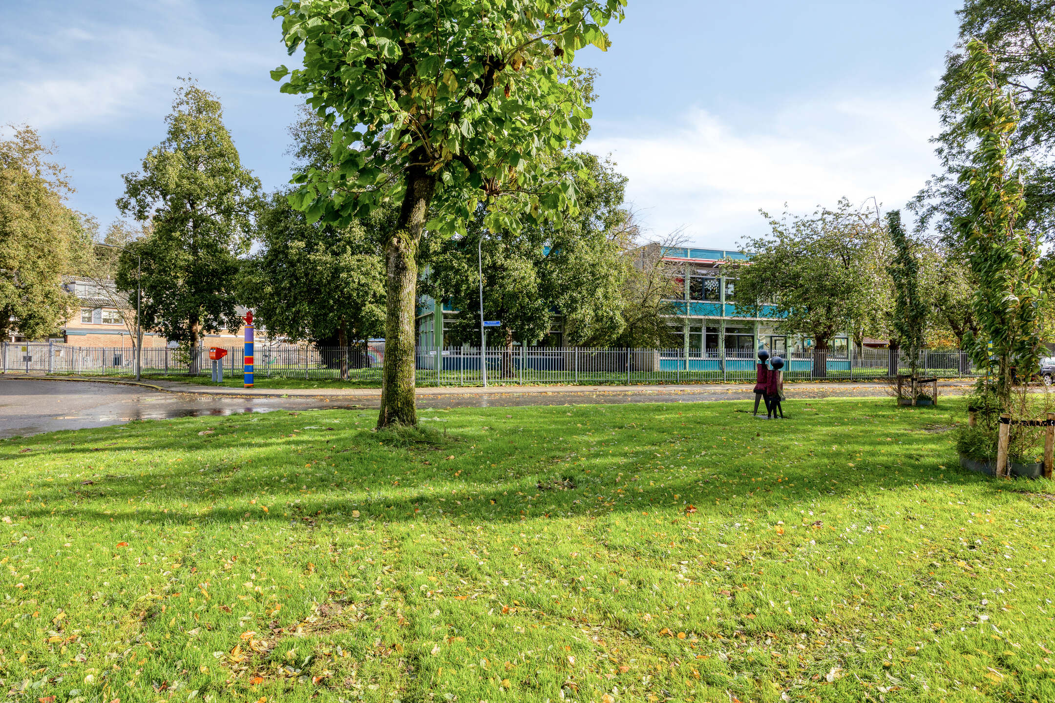 Aan de voorkant kijk je uit over een groen plantsoen met vijver, aan de achterzijde geniet je van optimale privacy in de tuin. Rustige ligging met de voordelen van de stad om de hoek.