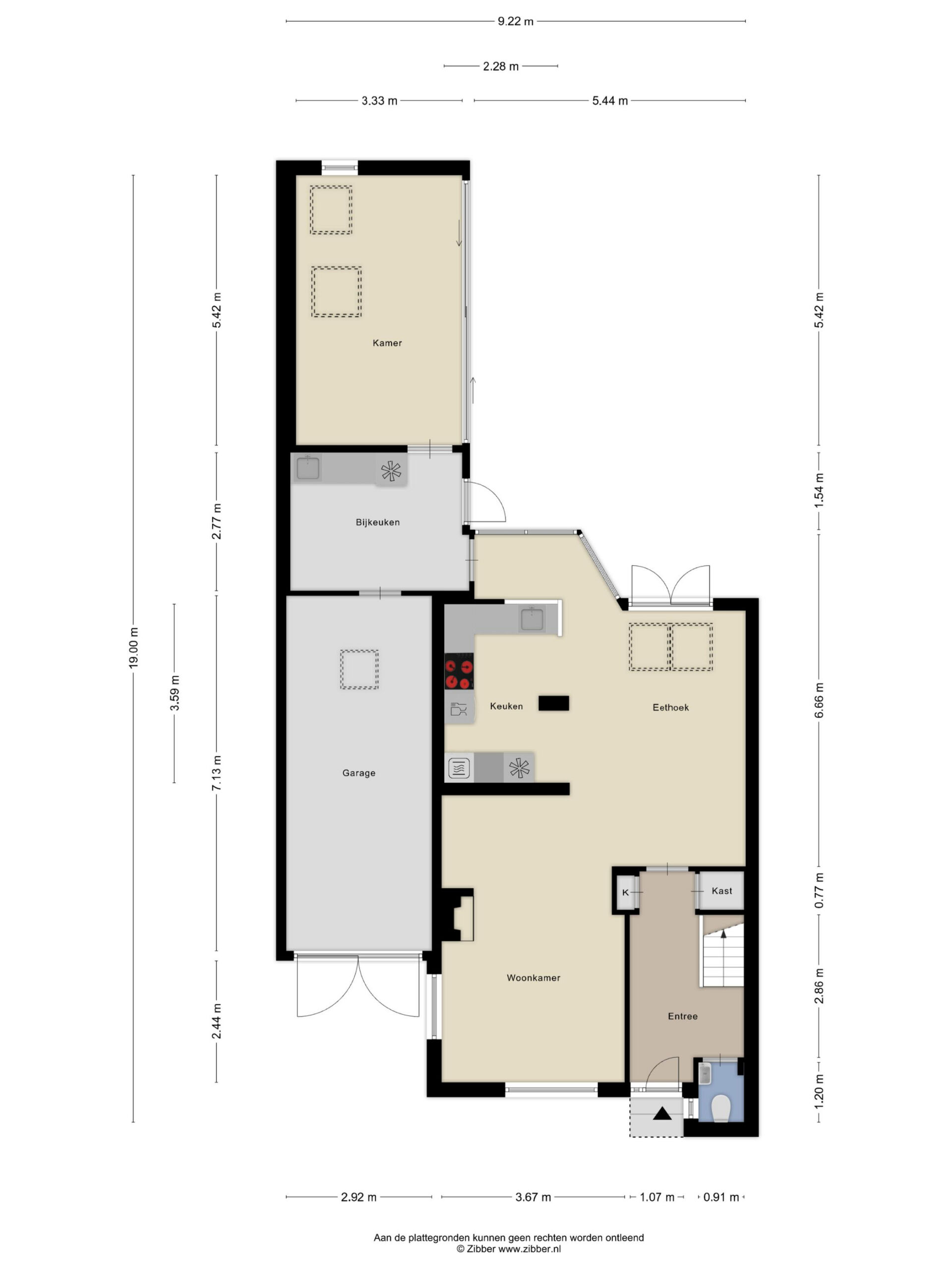 Entree, hal met trapopgang en trapkast, modern toilet, gezellige Z-vormige woonkamer met open haard, royale en lichte woonkeuken met openslaande deuren naar de tuin, bijkeuken met extra spoelbak en toegang tot de garage én de multifunctionele ruimte