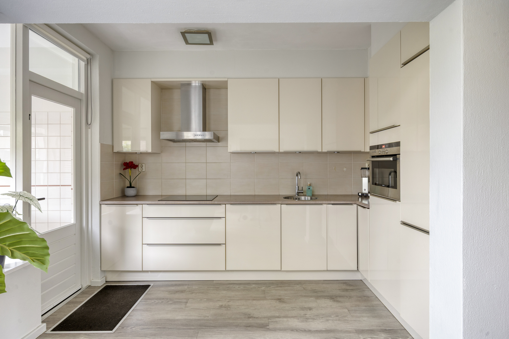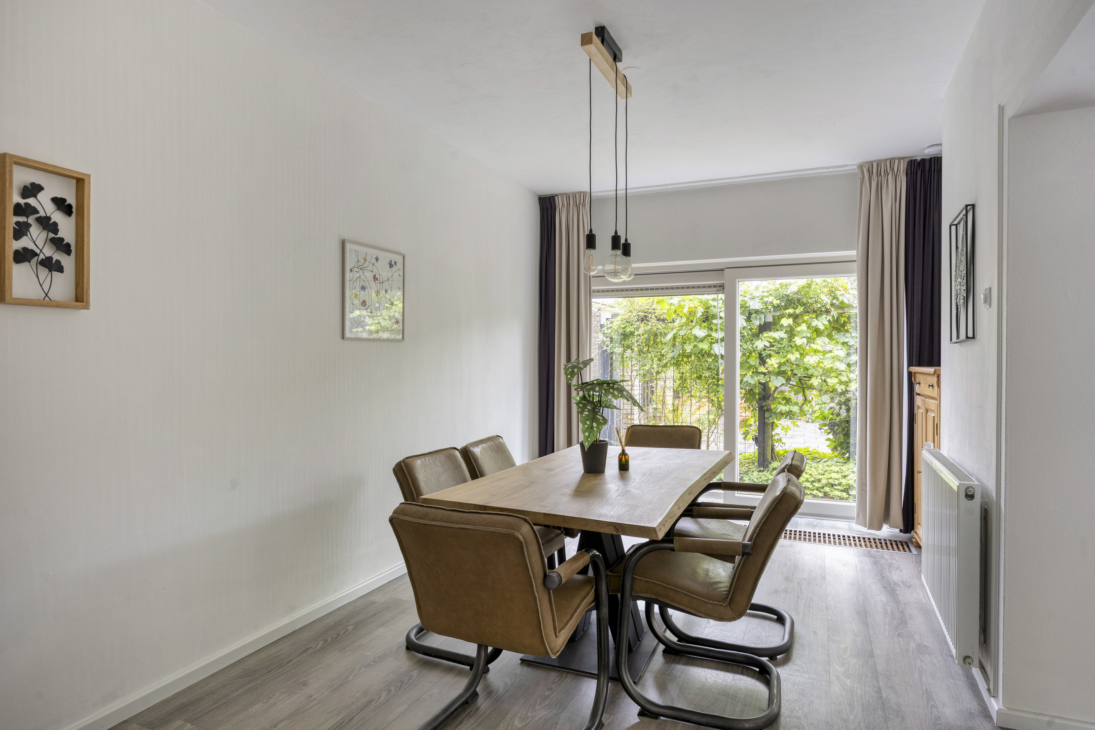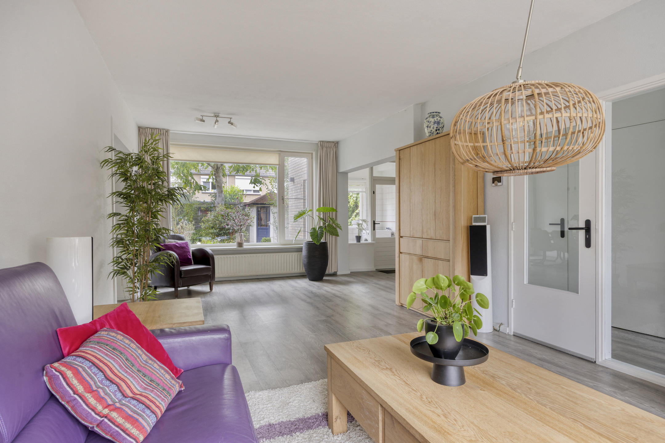 Wat deze ruimte extra praktisch maakt is de rechtstreekse toegang naar de garage. Via een brede schuifpui komt er lekker veel daglicht binnen en is er fraai uitzicht op -en toegang tot- de achtertuin.