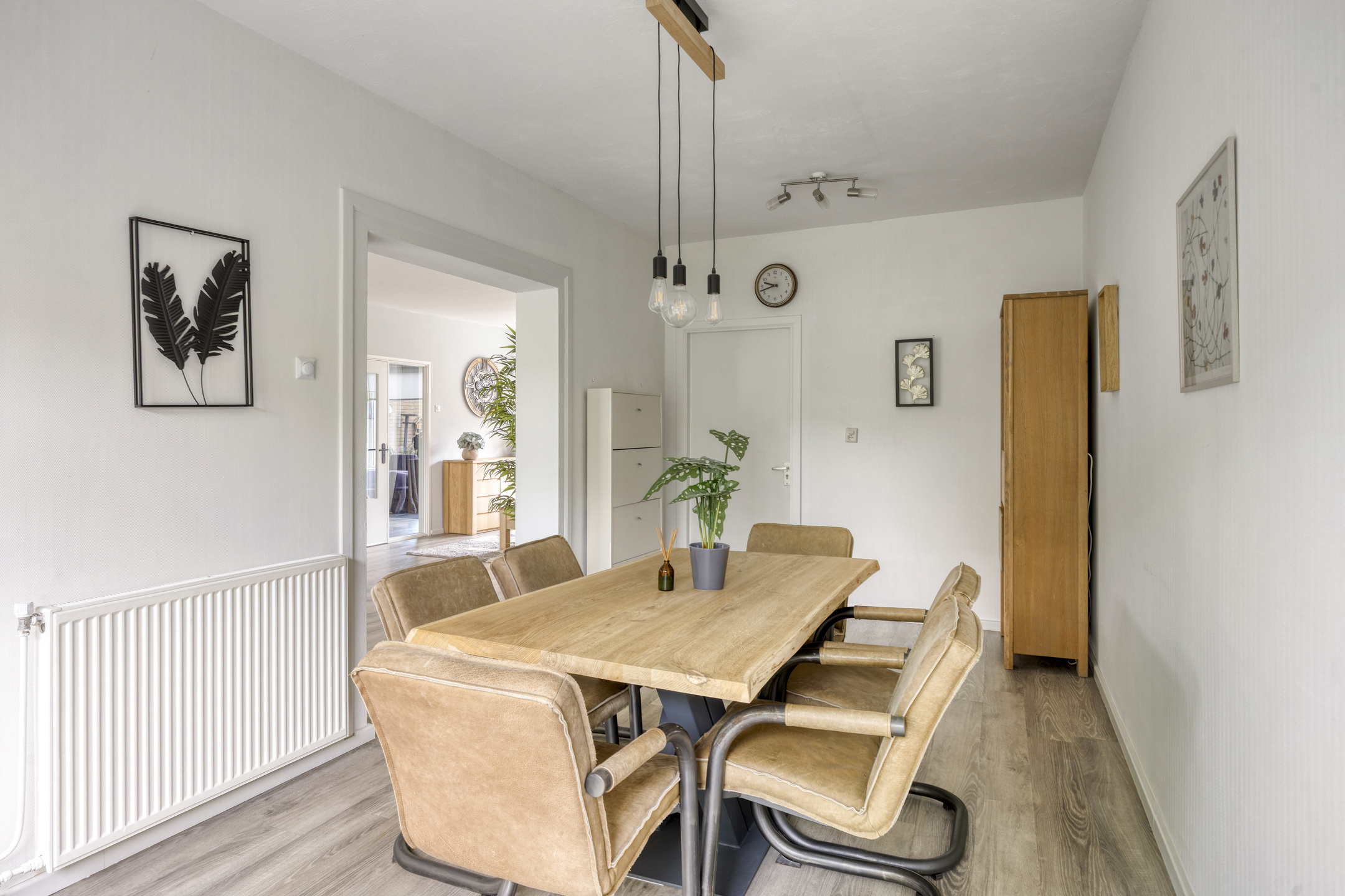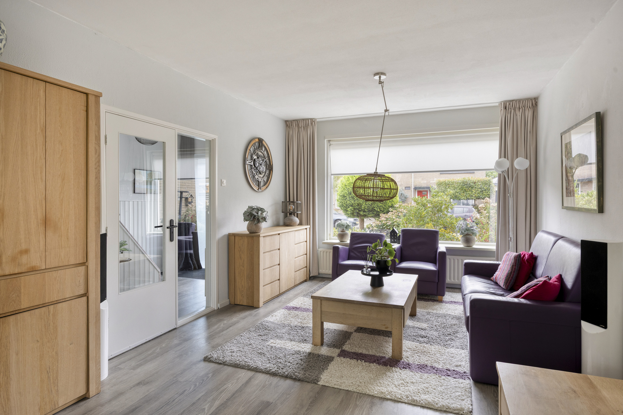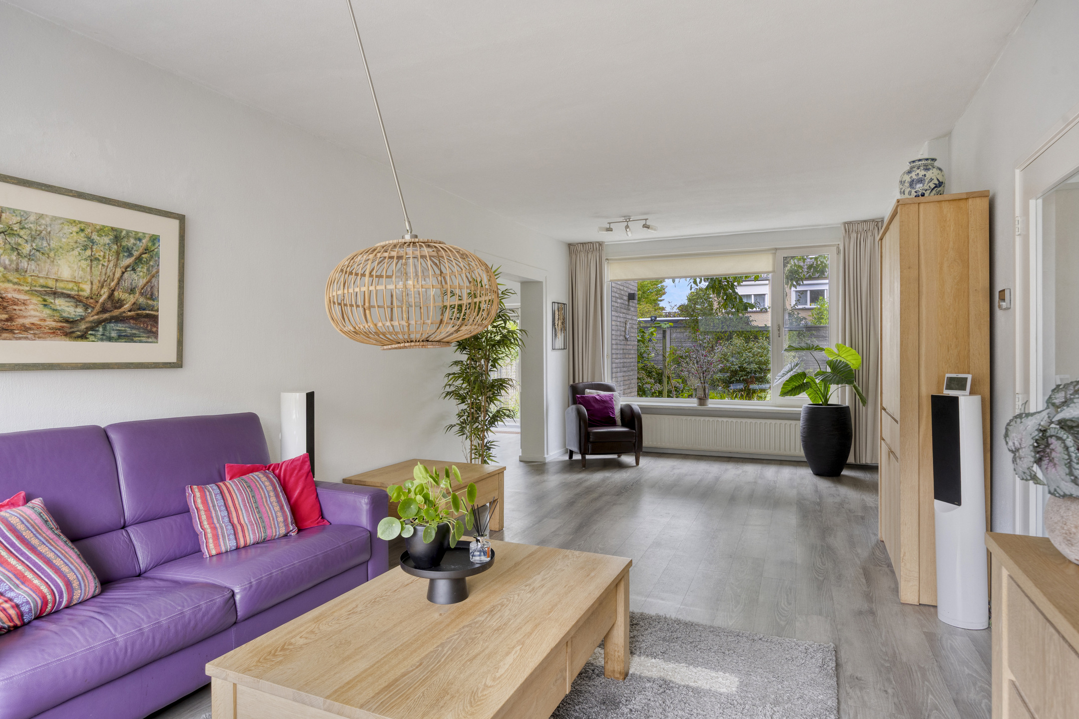 Wat deze ruimte extra praktisch maakt is de rechtstreekse toegang naar de garage. Via een brede schuifpui komt er lekker veel daglicht binnen en is er fraai uitzicht op -en toegang tot- de achtertuin.