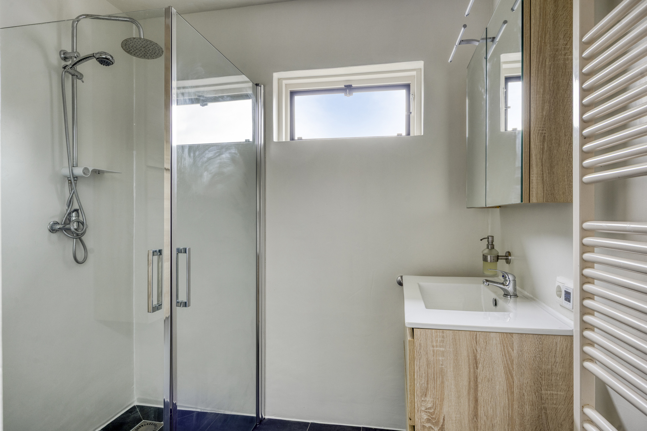 Overloop, afzonderlijke 2e toilet, 3 forse slaapkamers, badkamer met inloopdouche, wastafelmeubel en designradiator