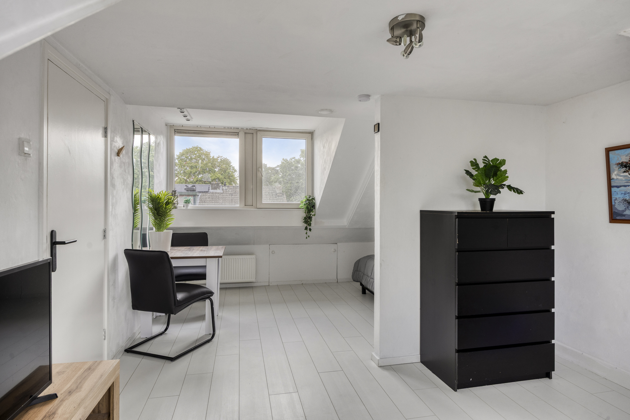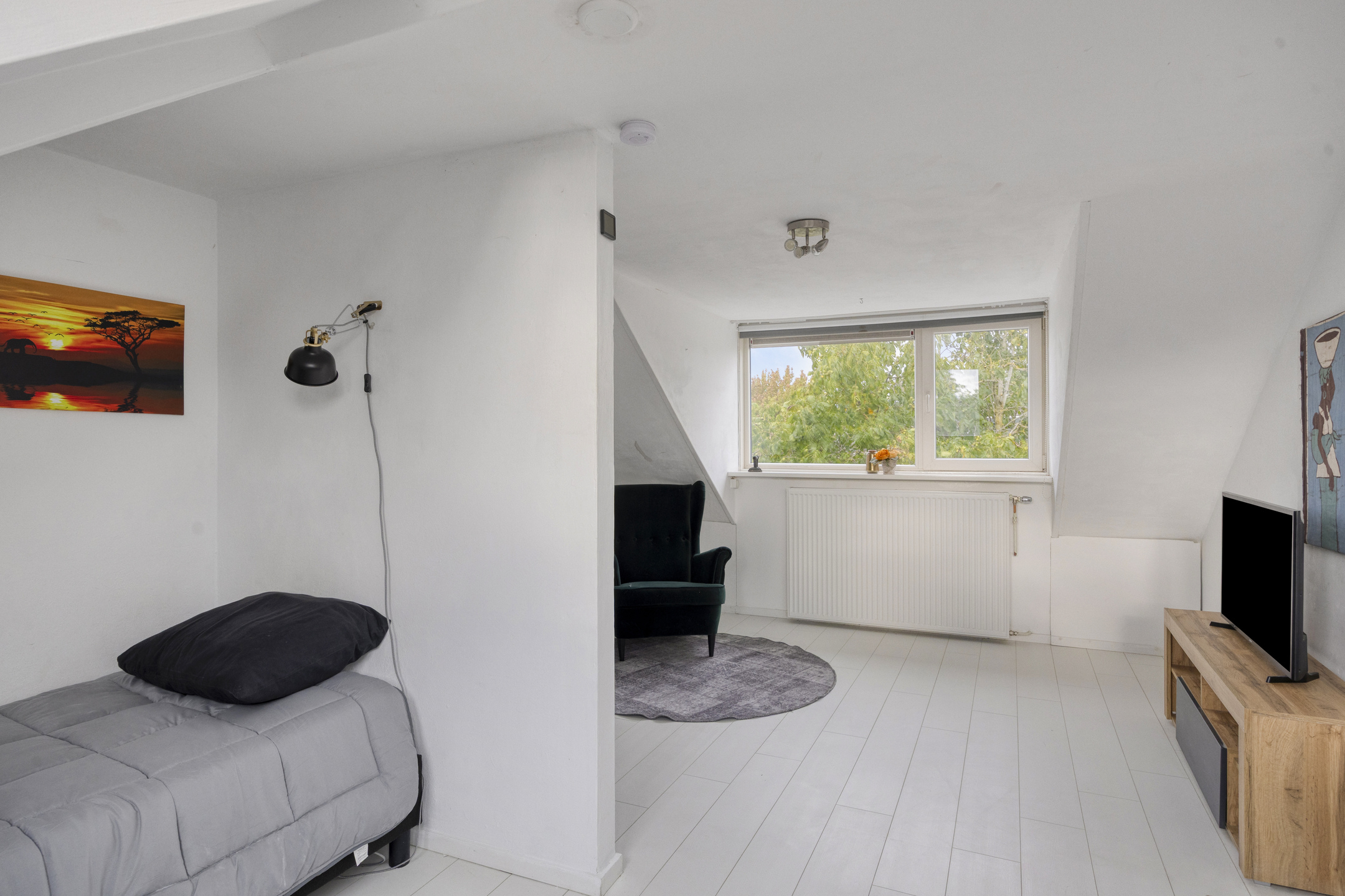 Wellicht een ideale ruimte voor logees of voor een opgroeiende puber die waarde hecht aan zijn of haar ‘eigen domein’?