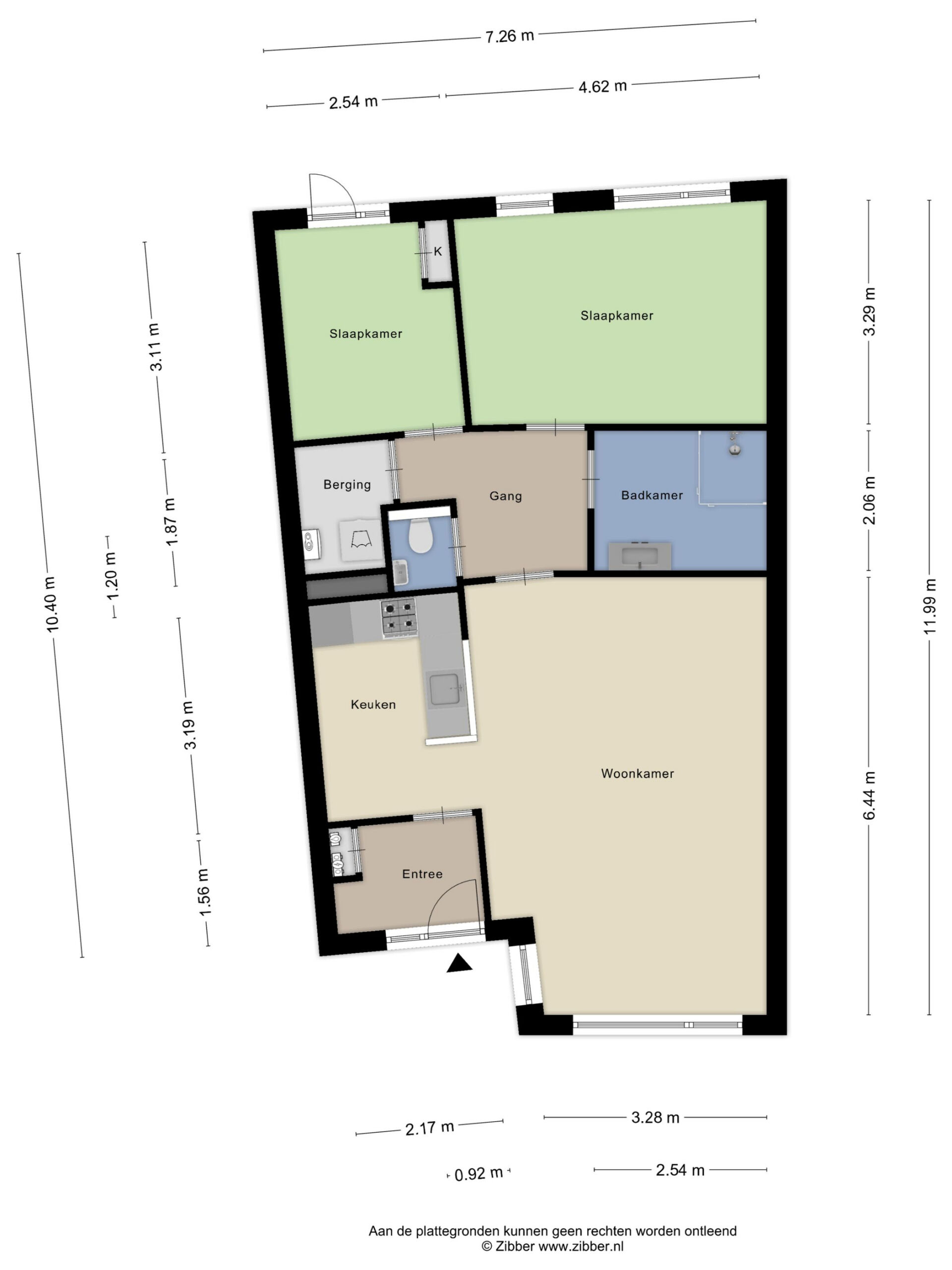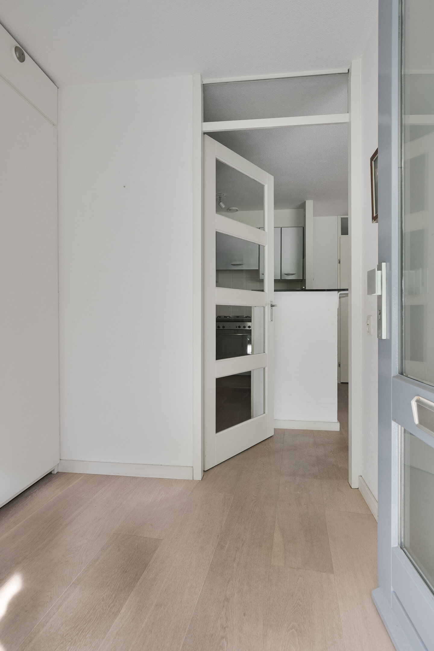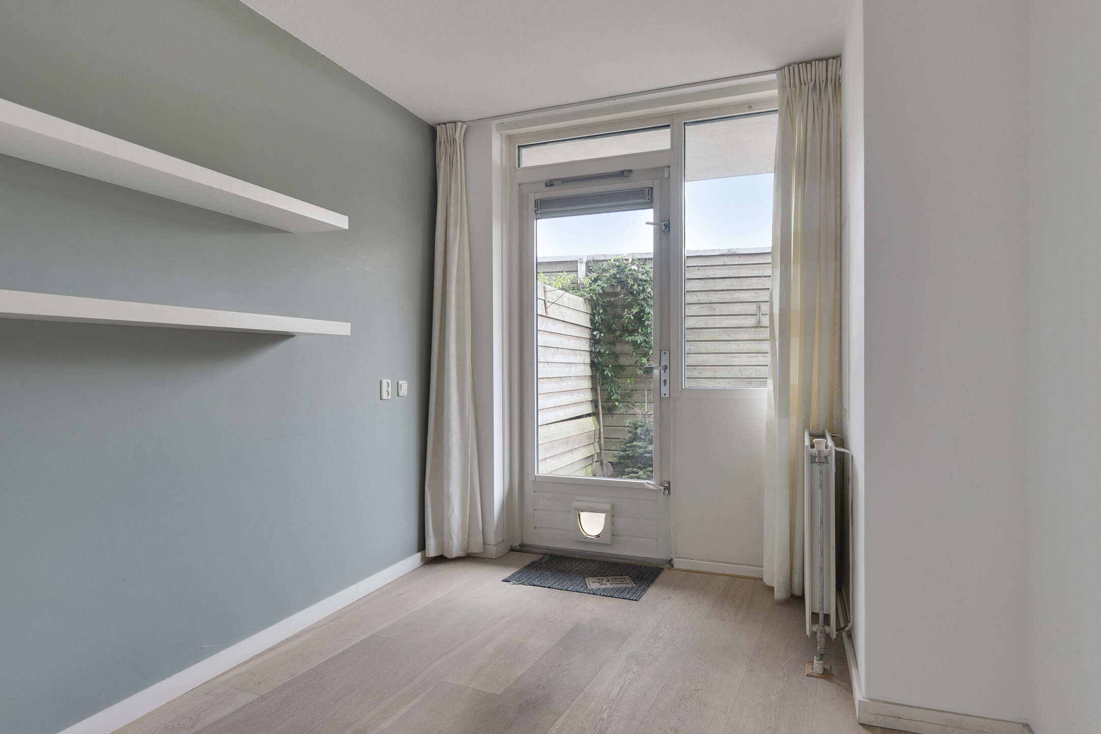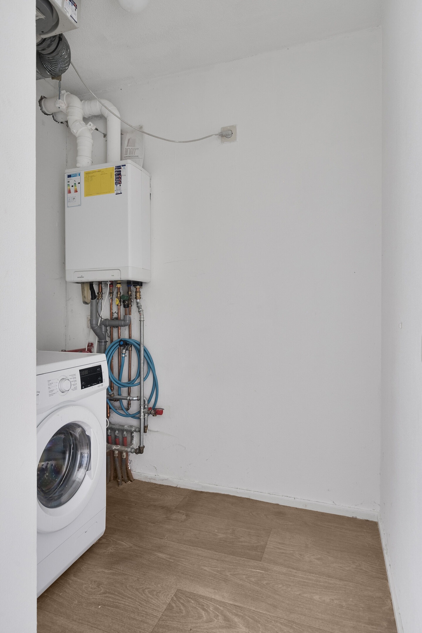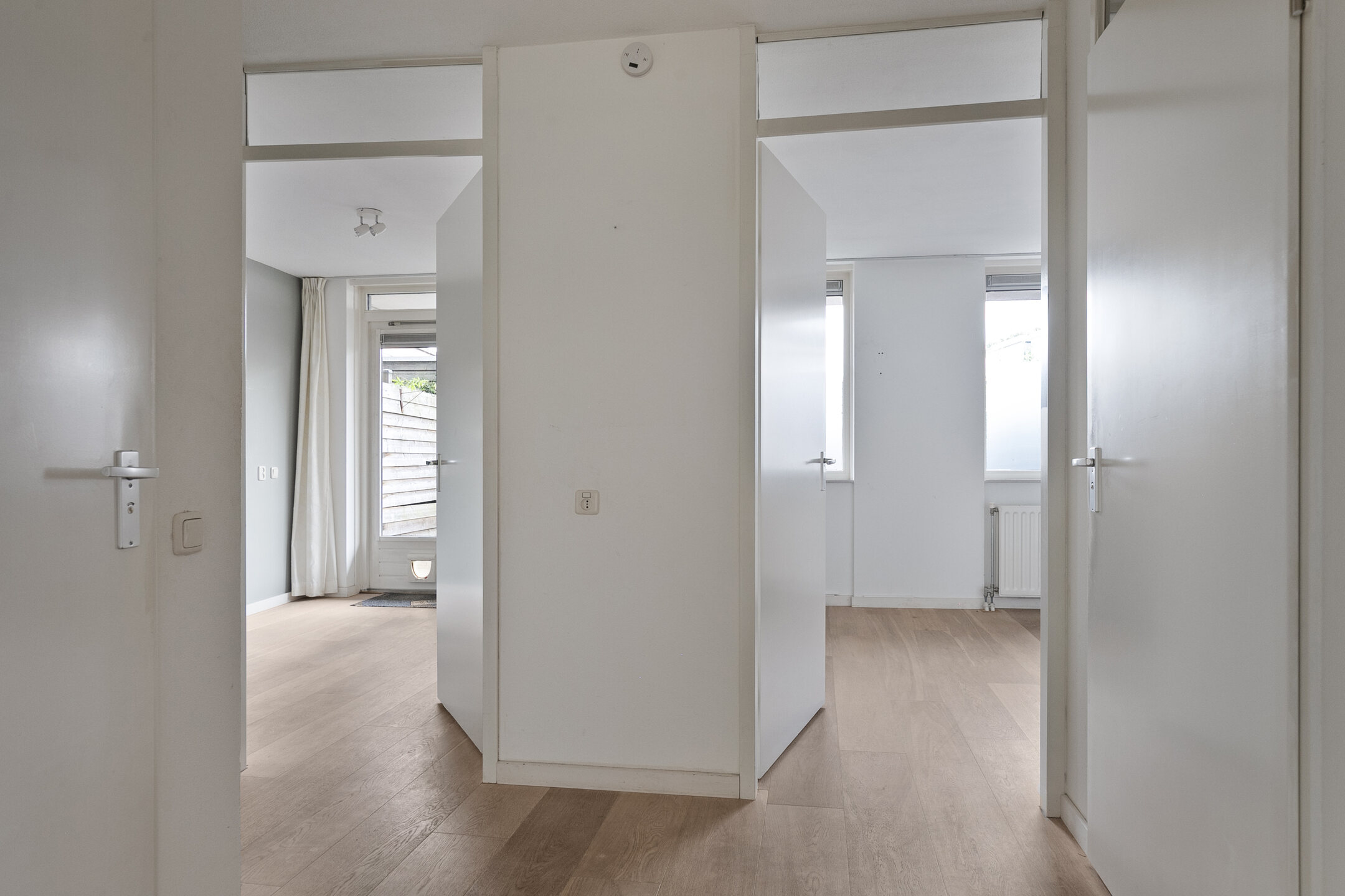 Eigen voordeur: Hal met meterkast, keuken met aansluitend de woonkamer, tussenhal met toegang tot de inpandige berging met wasmachine-aansluiting en ketel opstelplaats, toilet met fonteintje, badkamer met inloopdouche en wastafelmeubel, 2 slaapkamers waarvan 1 toegang biedt tot de achtertuin met berging.