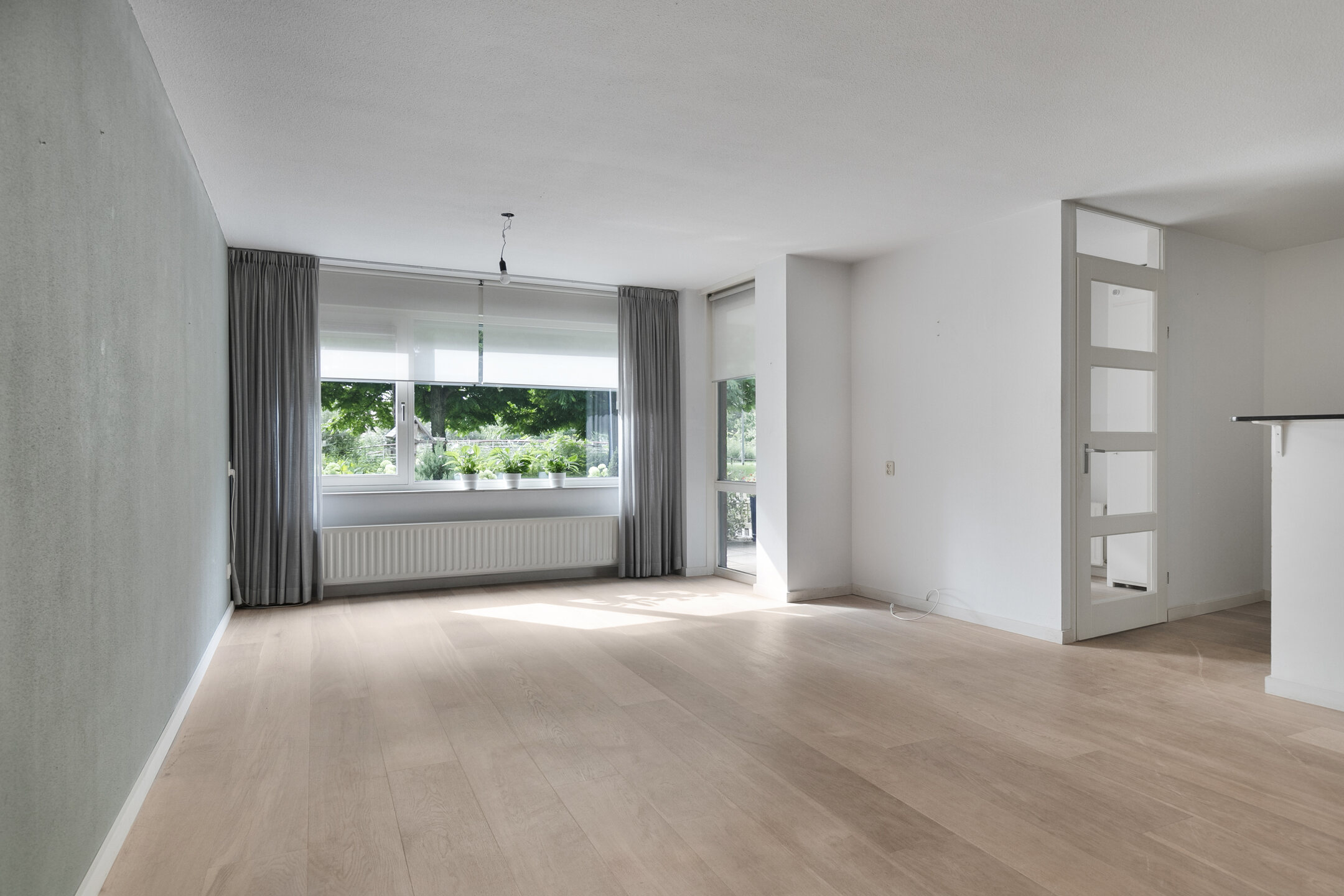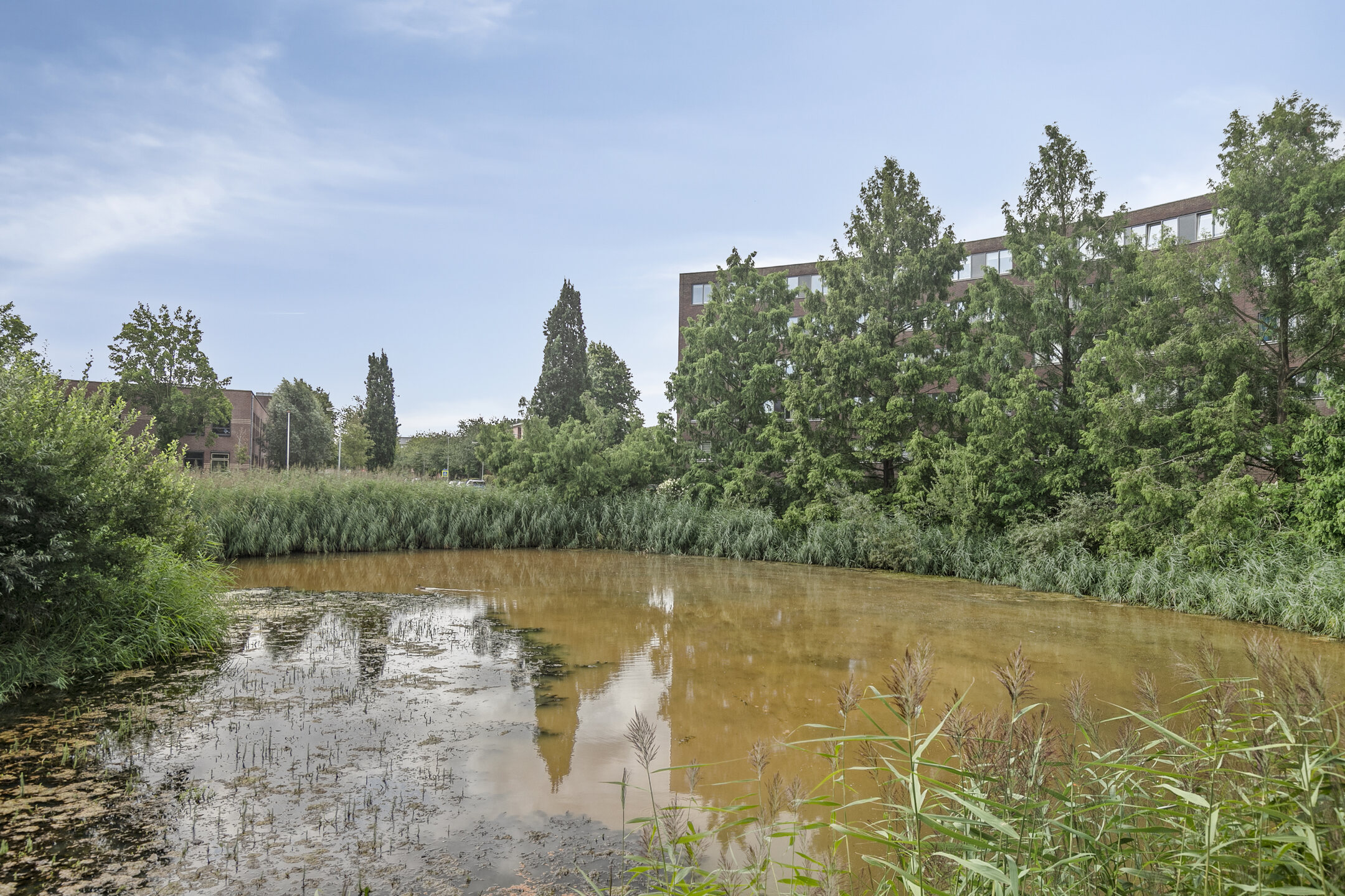 Vanuit de woonkamer en de voortuin is er een levendig uitzicht op de Tonselsedreef met de daarachter gelegen vijverpartij.