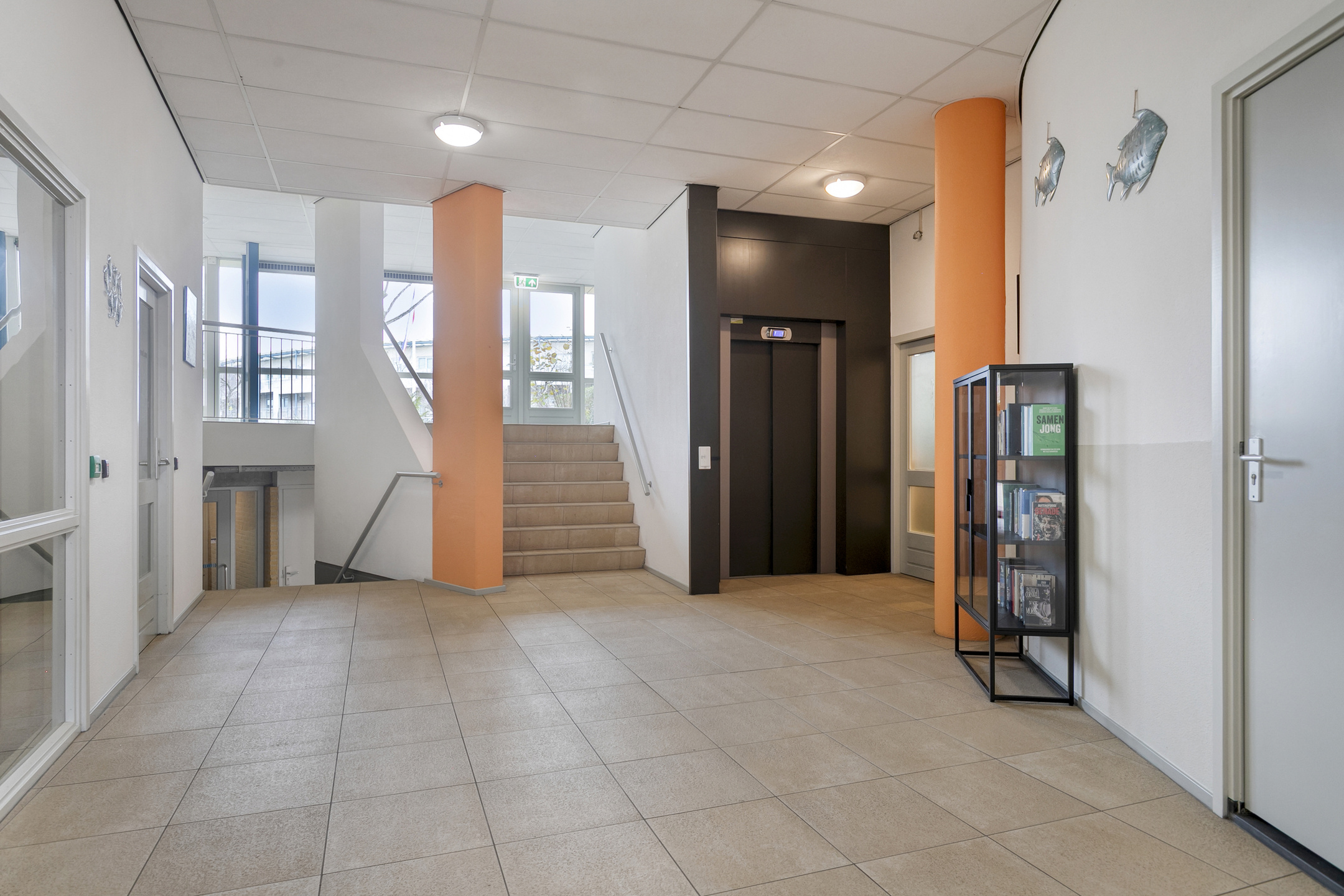 In de afgesloten centrale hal bevinden zich de brievenbussen en de liftinstallatie. Vanuit deze hal is de parkeerkelder te bereiken, zowel per lift als via een aantal traptreden. Hier is een eigen privé parkeerplaats en een ruime (fietsen)berging die bij het appartement behoren.