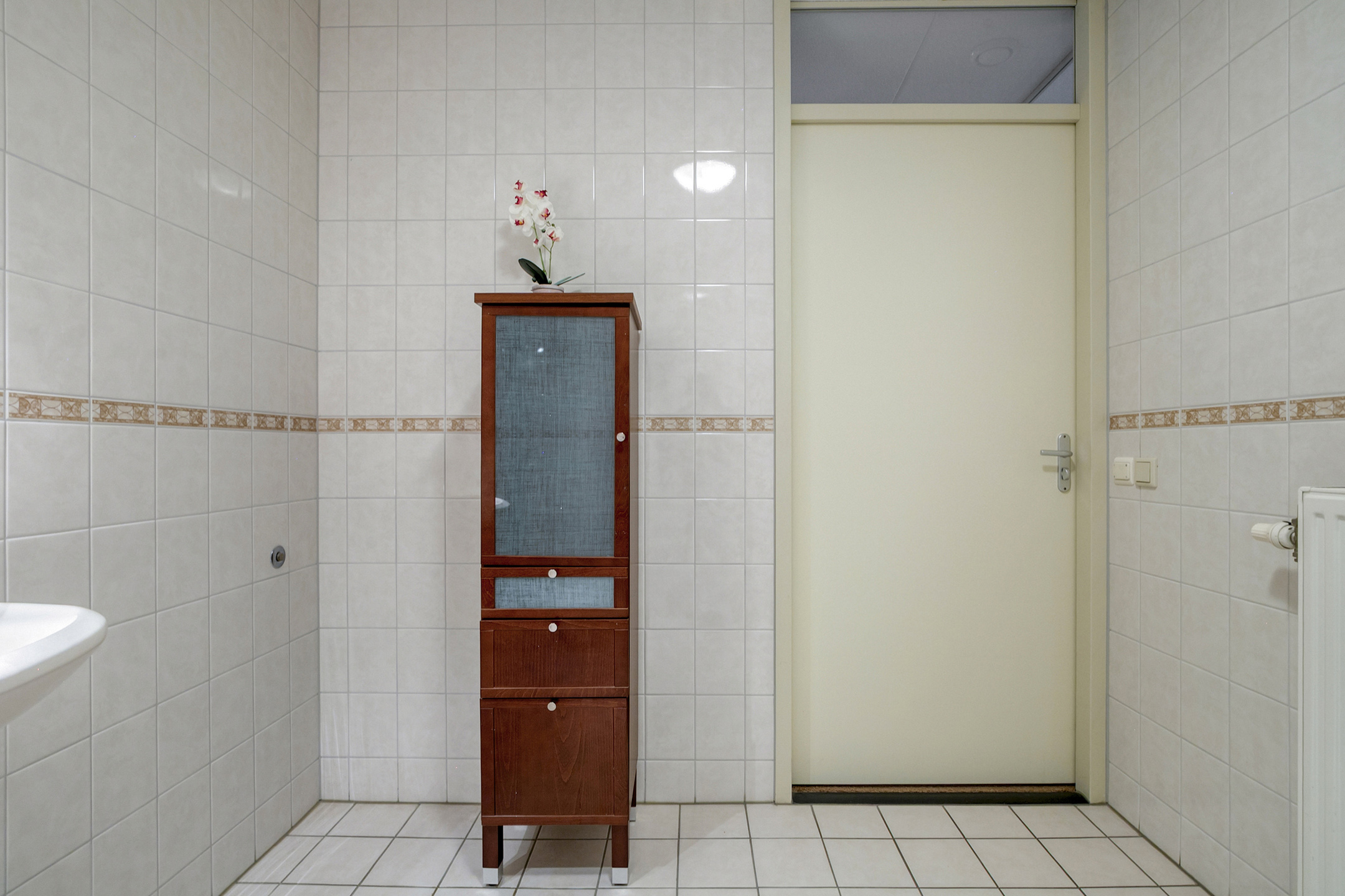 Na binnenkomst biedt de royale gang toegang tot het toilet met fonteintje en een afzonderlijke kast met daarin de aansluitingen voor de wasmachine en de droger.
